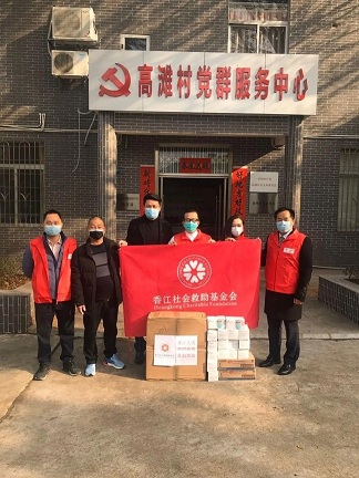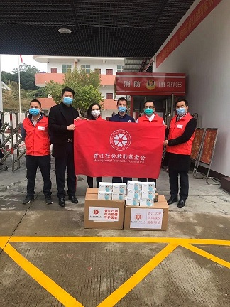 2020年2月19日,由香江健康山谷酒管總經理吳宣林先生帶領團隊,代表香江基金分別向增城派潭鎮高灘村委、派潭鎮公安局、派潭鎮消防大隊及林場捐贈抗疫醫療物資,分別是一次性口罩2000個、乙醇消毒液200瓶、免洗手消毒液240支。